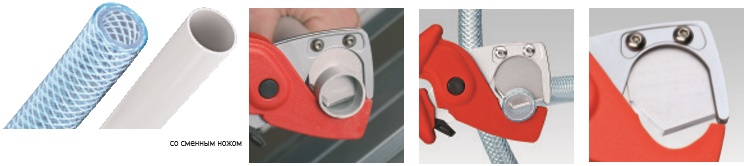 - Для резания тонкостенных пластмассовых труб (например, пластиковые бронированные трубы) и шлангов, пластиковых, резиновых, также армированных тканью, диаметром до о 25 мм